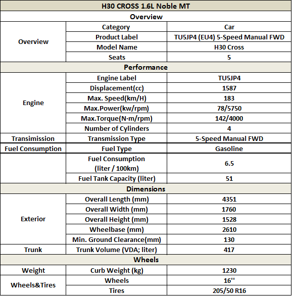 H30 CROSS, With a wheelbase of 2,610mm and a body height of 1,528mm, the H30 CROSS brings you the pleasure of oversize space.